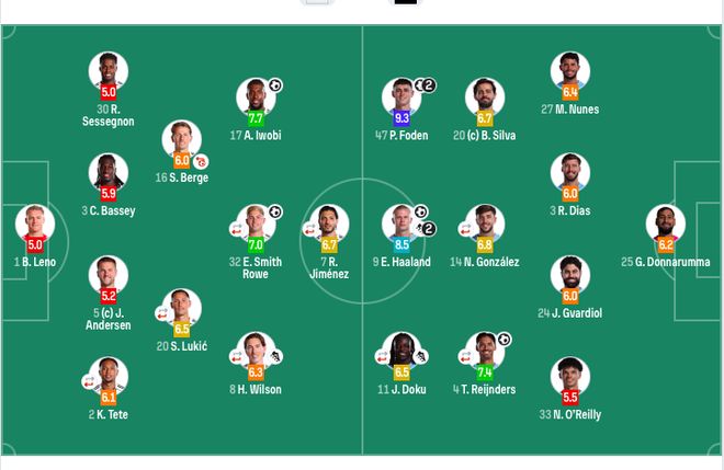 富勒姆首发:1-莱诺、2-泰特(46’21-卡斯塔涅)、5-安诺森、3-巴锡、30-塞塞尼翁、20-卢基奇(46’19-丘库埃泽)、16-博格、8-哈里·威尔逊(82’22-凯文·桑托斯)、32-史密斯·罗(74’24-乔希·金)、17-伊沃比、7-希门尼斯(74’18-阿萨雷)。